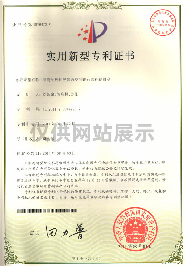 圓筒加熱爐豎管內(nèi)空間錐臺管程輻射室